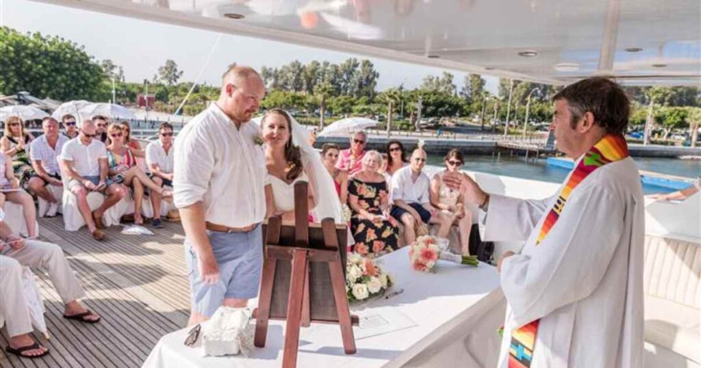 Here, our Anglican priests are Licensed Marriage Celebrants of the Republic of Cyprus so you do not need an additional civil ceremony prior to your religious wedding. Also, our priests can conduct the service at a venue to suit you – inside a hotel or in the grounds, in a taverna, a villa or gardens, onboard a yacht or even on the beach – the choice is yours. A small intimate affair or large family gatherings can all be accommodated.